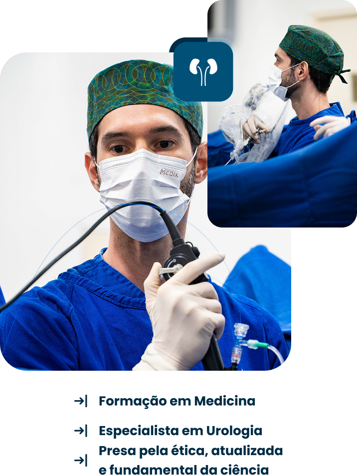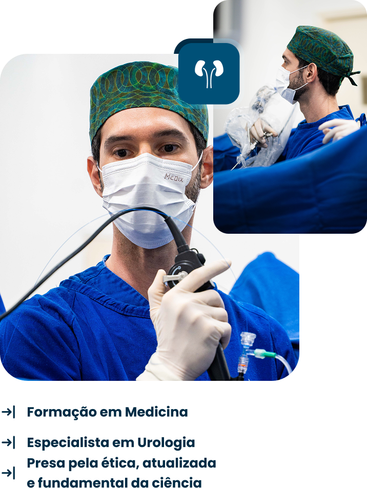 O cálculo renal é uma das condições mais dolorosas na urologia. Meu trabalho envolve não só tratar a crise de forma segura, mas orientar hábitos e medidas para prevenir novos episódios. Utilizo técnicas atualizadas e uma abordagem completa que combina avaliação, intervenção quando necessária e acompanhamento contínuo.